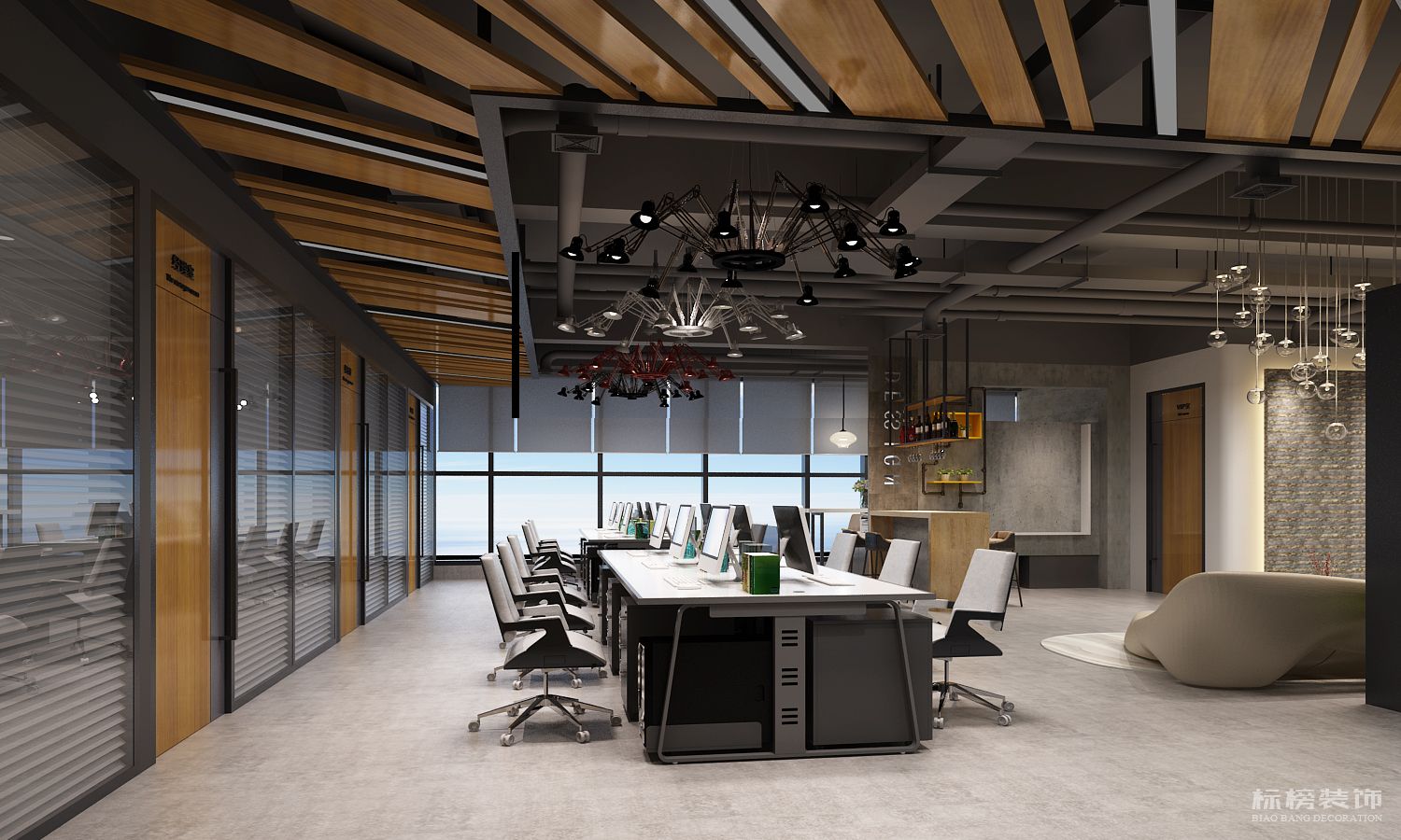 由于是辦公室的設(shè)計(jì),有些功能還是需要規(guī)劃的。空間小想要設(shè)計(jì)好,是有點(diǎn)難度的,其實(shí)這樣的設(shè)計(jì)可以很好的劃分功能區(qū),對辦公室沒有什么影響,就是采用了一些開放式的設(shè)計(jì),隔墻設(shè)計(jì)或者落地窗設(shè)計(jì)。